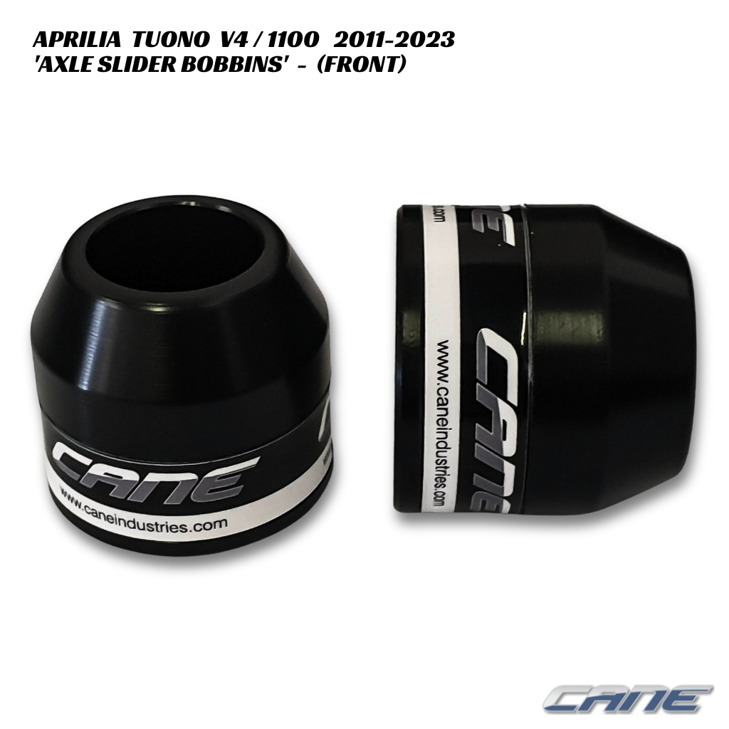 Cane Axle Slider Bobbins – FRONT – Aprilia Tuono V4 / 1100 2011-2023