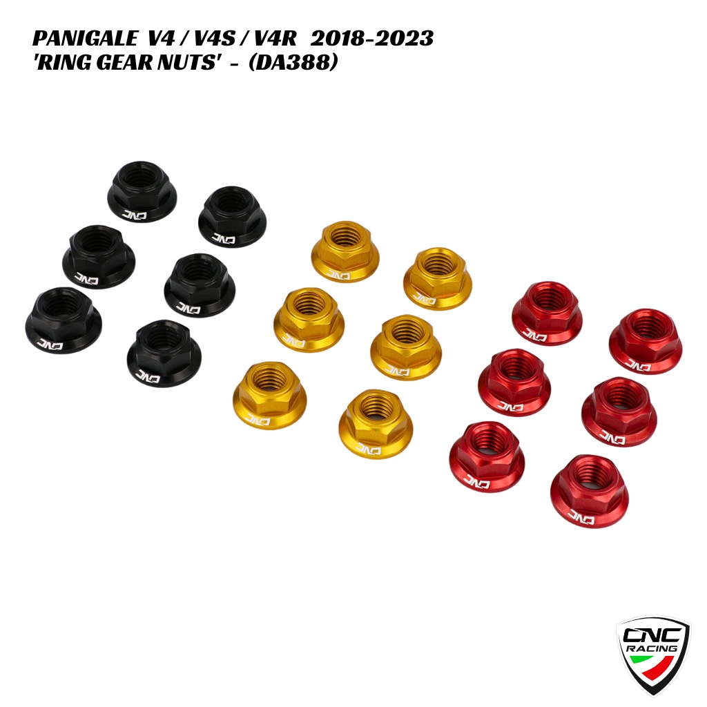 CNC Ring Gear Nuts – 6pc – DA388 – Ducati Panigale V4 / V4S / V4R 2018-2023