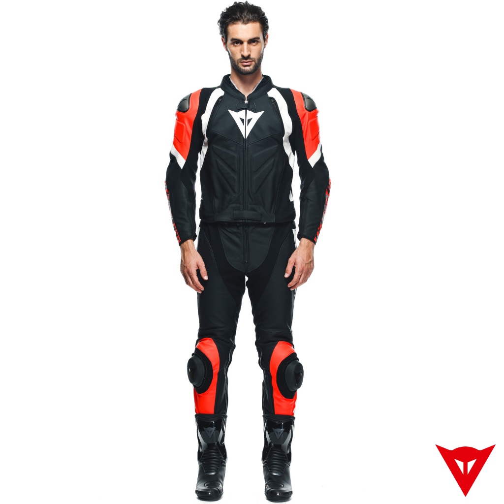 Dainese AVRO 4 2PCS Leather Suit – BLACK-MATT/FLUO-RED/WHITE