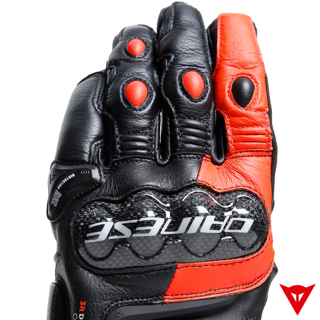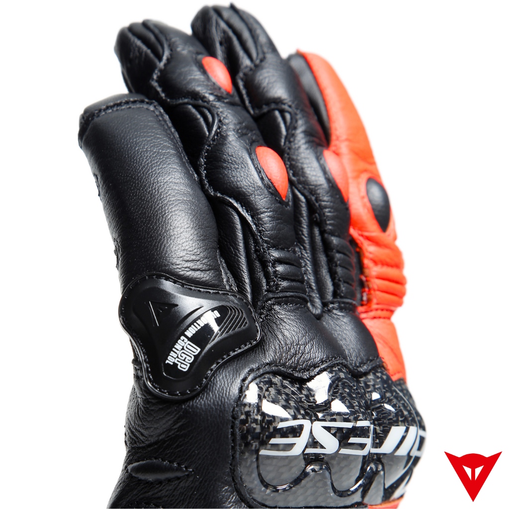 Dainese Carbon 4 Short Leather Gloves – BLACK/FLUO-RED