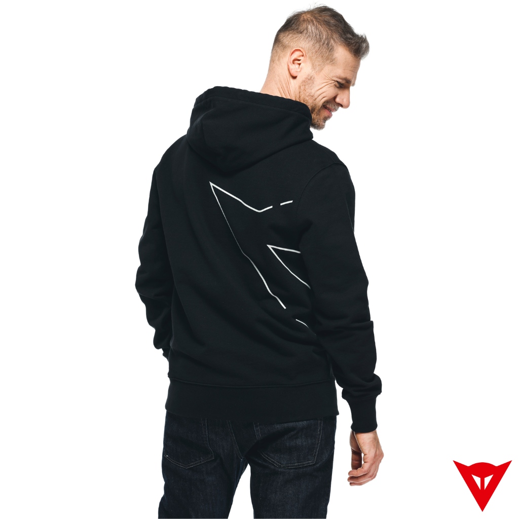 The Dainese hooded sweater is made of pure cotton and is inspired by speed and the Dainese logo.