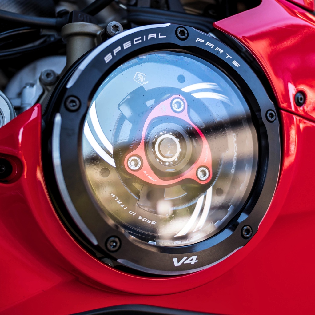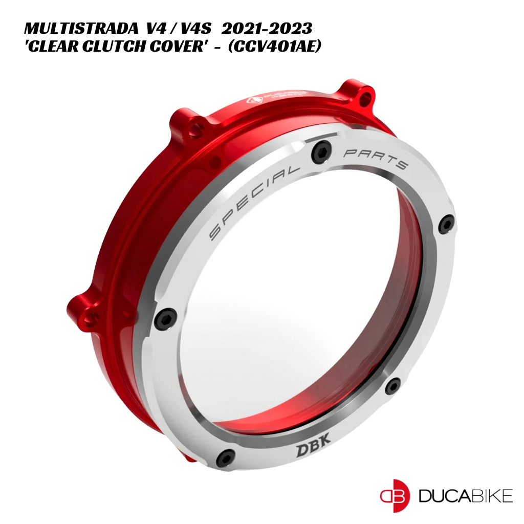 Home » GFP Motorcycles Online » DucaBike Billet Clear Clutch Cover CCV401AE – RED/SLV – Ducati Multistrada V4 / V4S 2021-2023