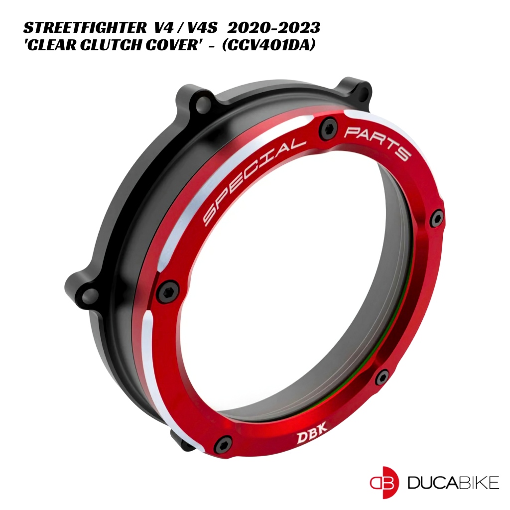 DucaBike Billet Clear Clutch Cover CCV401DA – BLK/RED – Ducati Streetfighter V4 / V4S 2020-2023