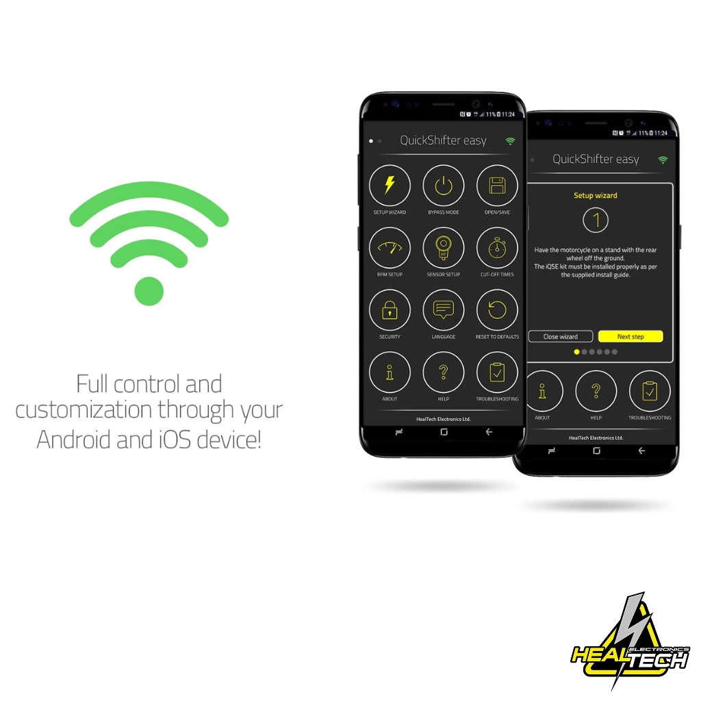 The iQSE is the only quickshifter module on the market which utilizes WiFi technology and an Android / iOS app for setup and verification.