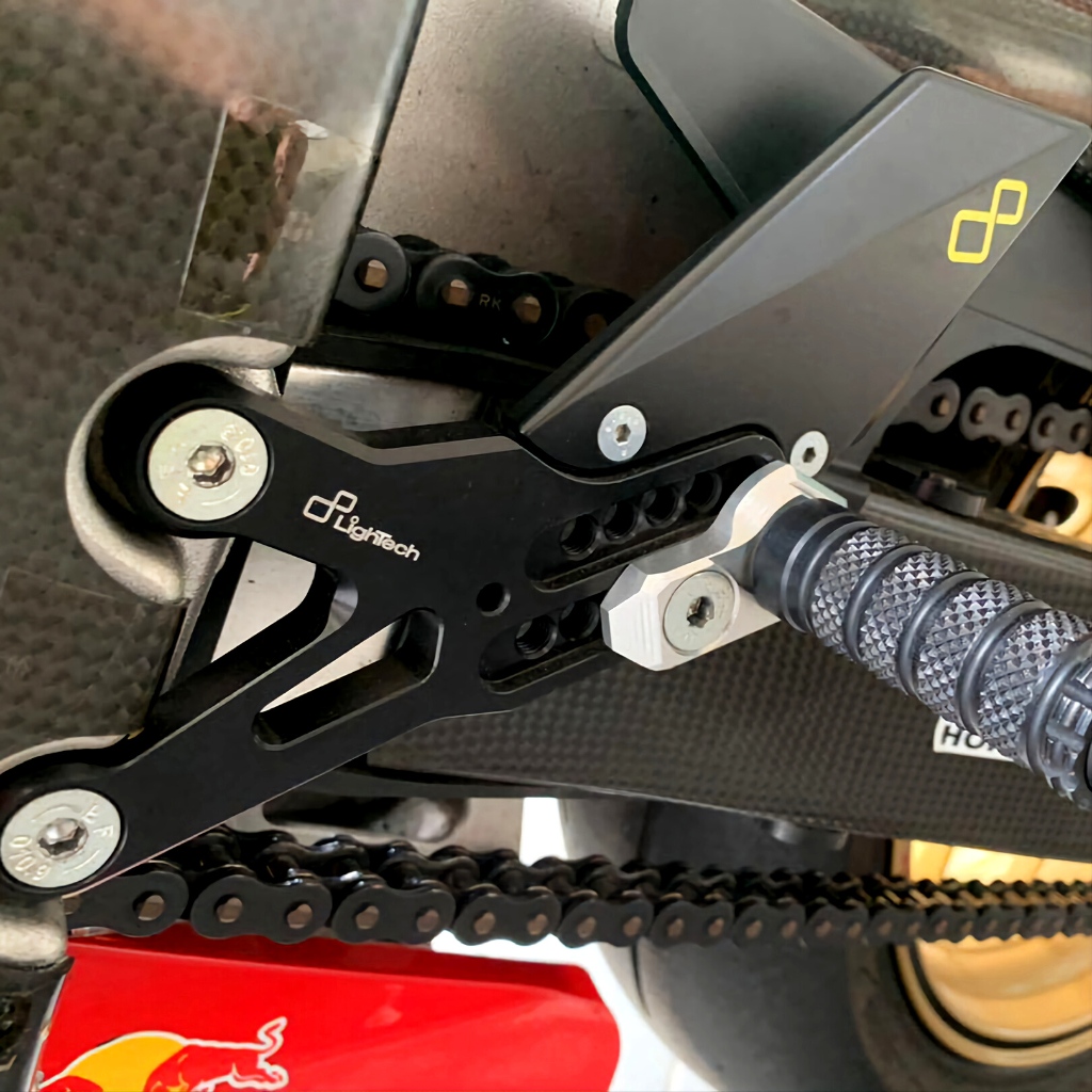 - Lightech rearsets adopt their unique design referred to as the “Track System”