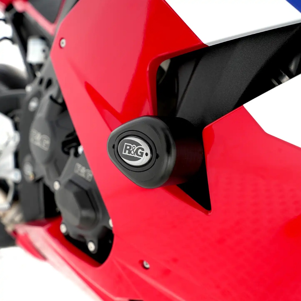 R&G Aero Crash Protectors feature a stylish, aerodynamic Aero Bobbin and are available in Black. Suitable for the Honda CBR1000RR-R Fireblade/ SP ’20- model. R&G Crash Protectors offer core motorcycle protection, keeping the frame, engine, fairing and other critical components off the ground in the event of a crash, drop or slide.