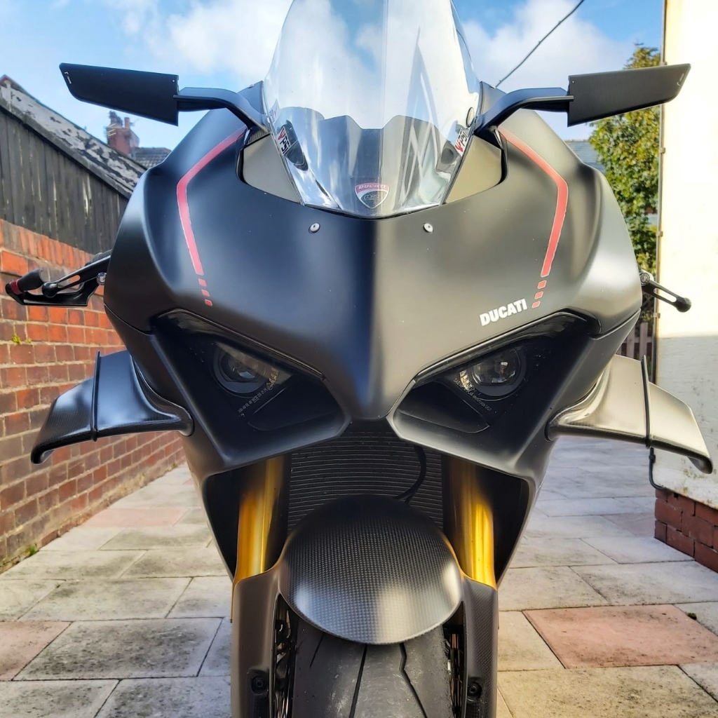 The mirrors sport an aggressive MotoGP spoiler-like look, which visually enhances any bike they’re fitted to.